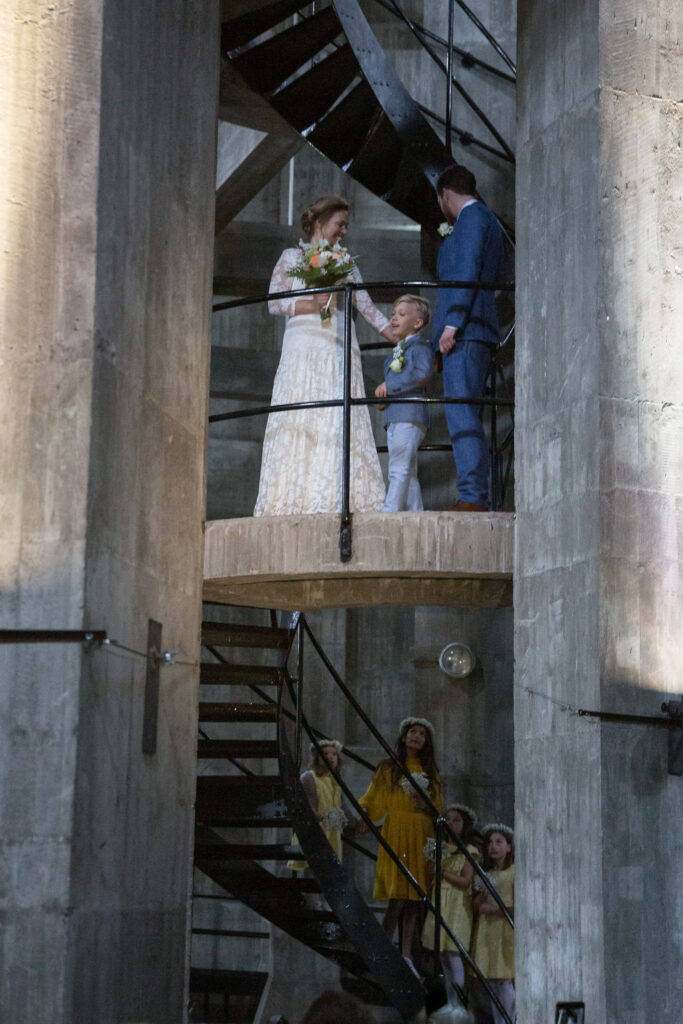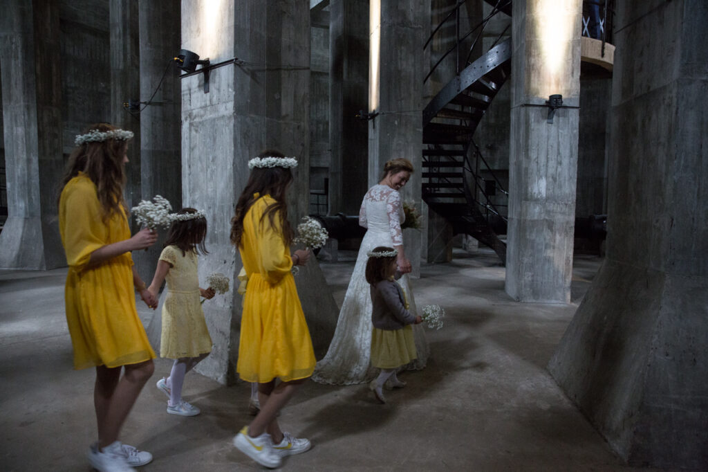 Deia og Markus holdte bryllup i vandtårnet. Det var så super smukke kontraster i det gamle vandtårn, med den hvide brudekjole, gule blomster og gule brudepiger. Jeg er så vild med kontrasterne, mødet mellem det rå og upolerede, og det fine, lette og romantiske. Jeg kan absolut anbefale at holde bryllup i vandtårnet i Brønshøj, eller andre unikke steder. Det giver en ramme for nogle fantastisk billeder, og jeg elsker det.
