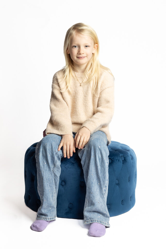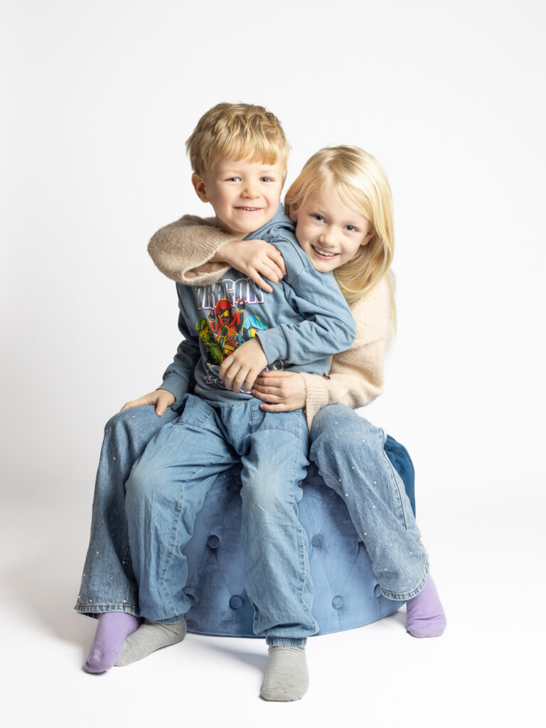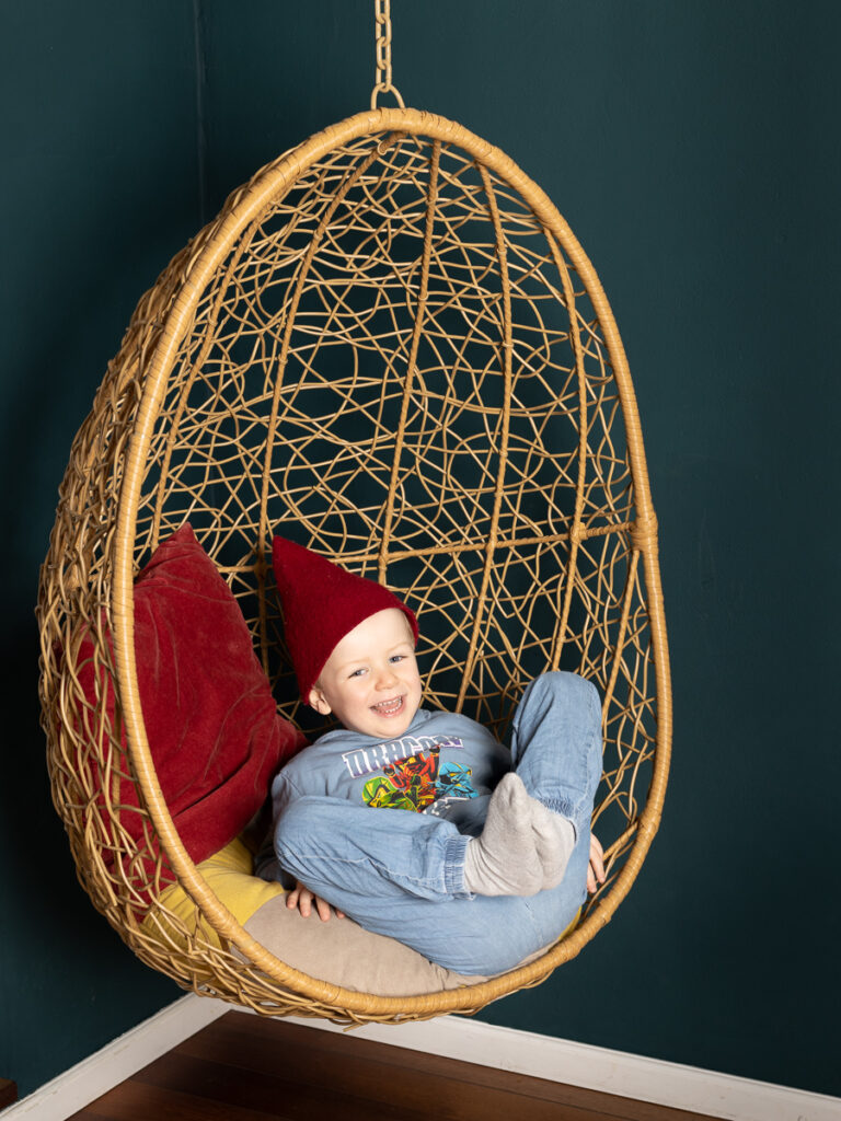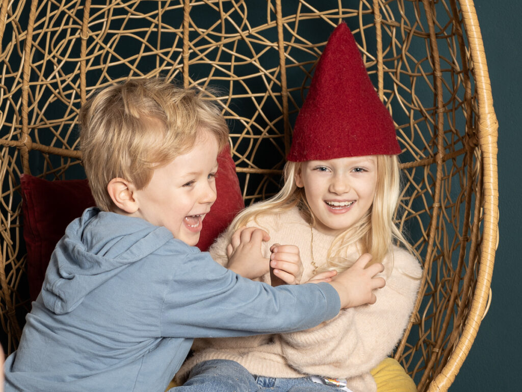 Den tid på året hvor denne skønne familie stod klar til årets juleportrætter. En glædelig julefotografering, med studieportrætter her hos Winther Sol Foto. Der var medbragt godt humør og nissehuer, og selvfølgelig var der også lige tid til et par billeder i den skønne kurvestol i stuen – nu med en smuk petroleumsblå væg som baggrund.